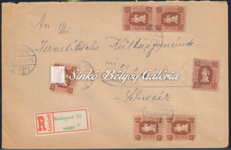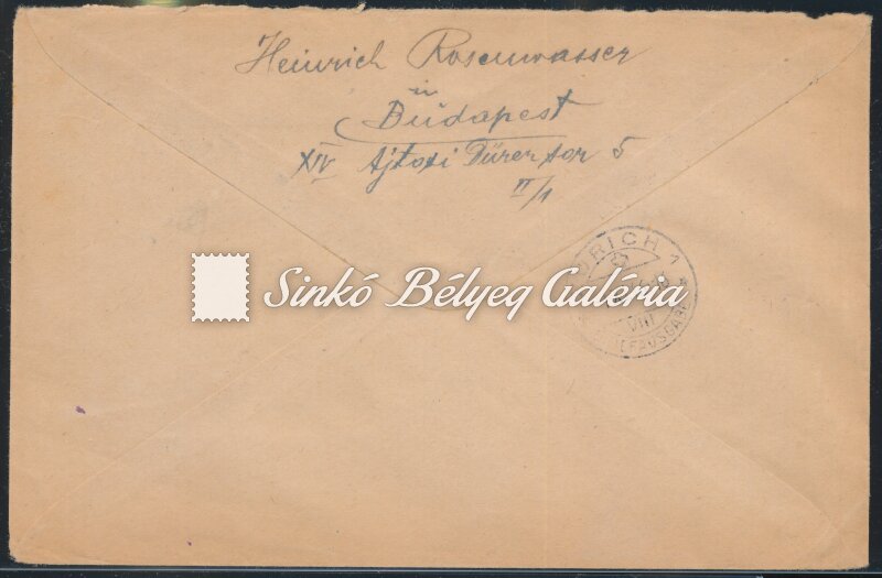 1947.10.27. Ajánlott levél BUDAPEST-ZÜRICH