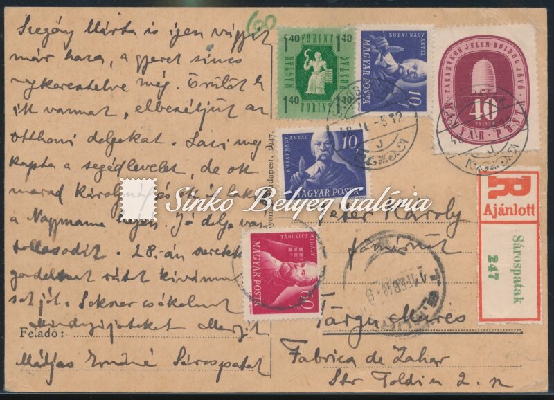1948.02.05. Ajánlott levelezőlap SÁROSPATAK-TARGU MURES