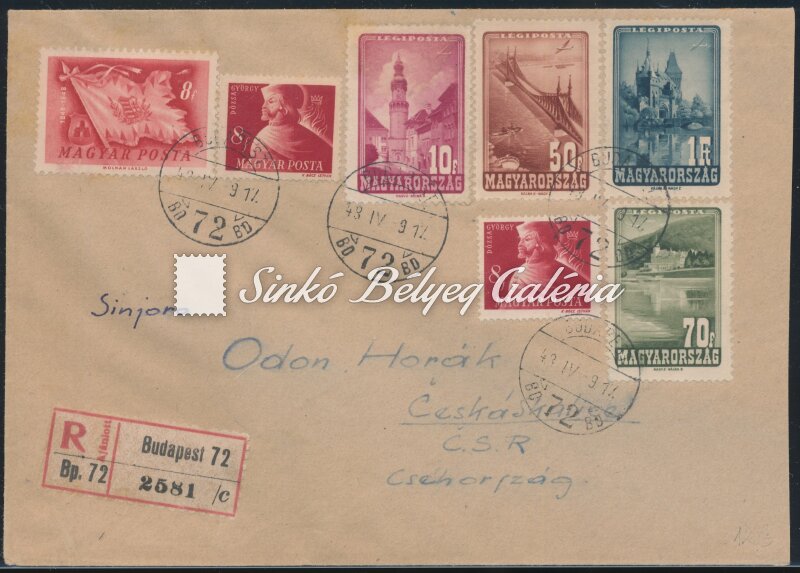 1948.04.09. Ajánlott levél BUDAPEST-CESKÁ SKALICE