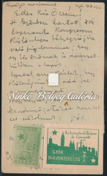 1948.05.16. Levelezőlap GYŐR-BUDAPEST
