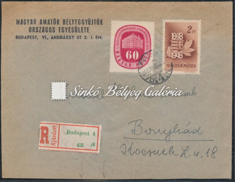 1948.05.20. Ajánlott távolsági levél BUDAPEST-BONYHÁD