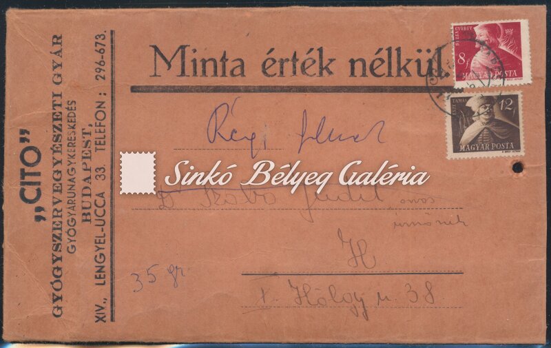 1948.06.08. Minta érték nélküli küldeménye helyben BUDAPESTen