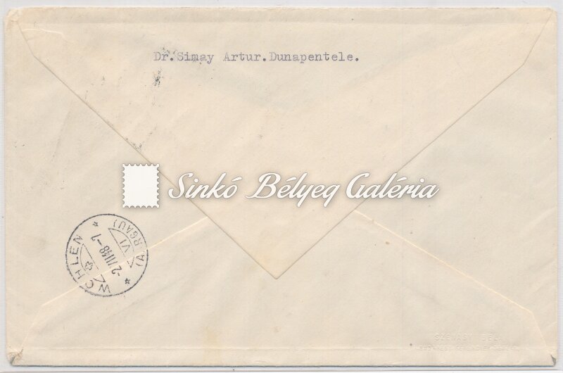 1948.06.23. Ajánlott levél DUNAPENTELE-WOHLEN
