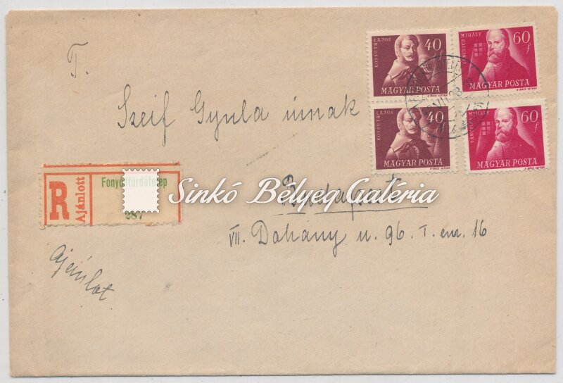1948.08.28. Távolsági ajánlott levél FONYÓDFÜRDŐTELEP-BUDAPEST