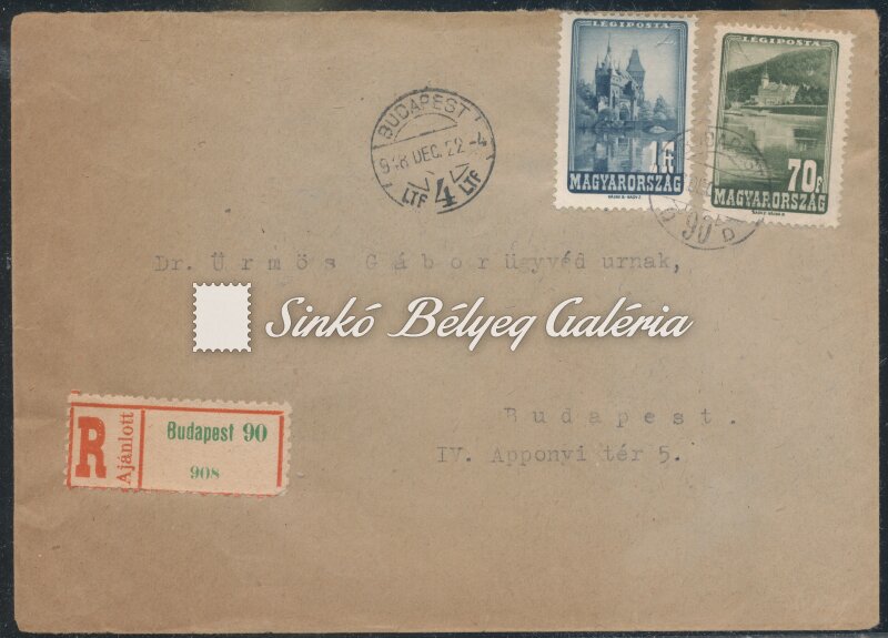1948.12.22. Helyi ajánlott levél BUDAPEST