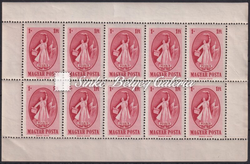 Leírás | 1949. Alekszandr Szergejevics Puskin tízes ív végigfutó fogazással! / 1949. Alexander Sergeyevich Pushkin sheet of 10, with complete perforation! |