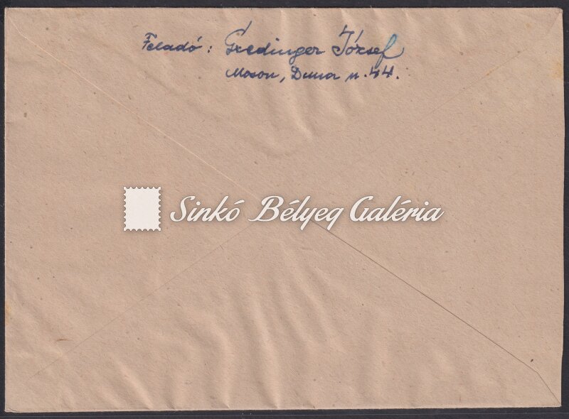 Leírás | 1949. Bélyegnap (22.) - L kisív ajánlott levélen MOSONMAGYARÓVÁRon. / 1949. Stamp Day (22.) - L miniature sheet on a registered letter in MOSONMAGYAROVAR. |