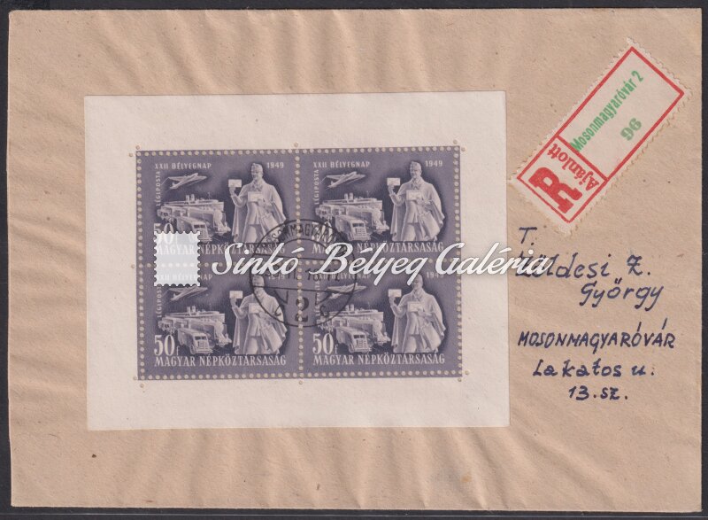 1949. Bélyegnap (22.) - L kisív ajánlott levélen MOSONMAGYARÓVÁRon
