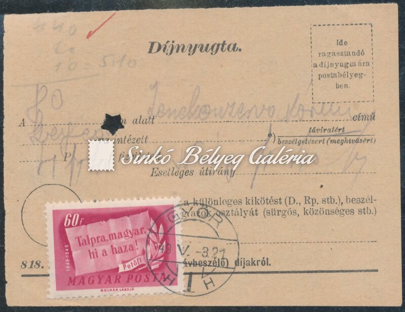 1949.05.03. Távirati díjnyugta GYŐR/1