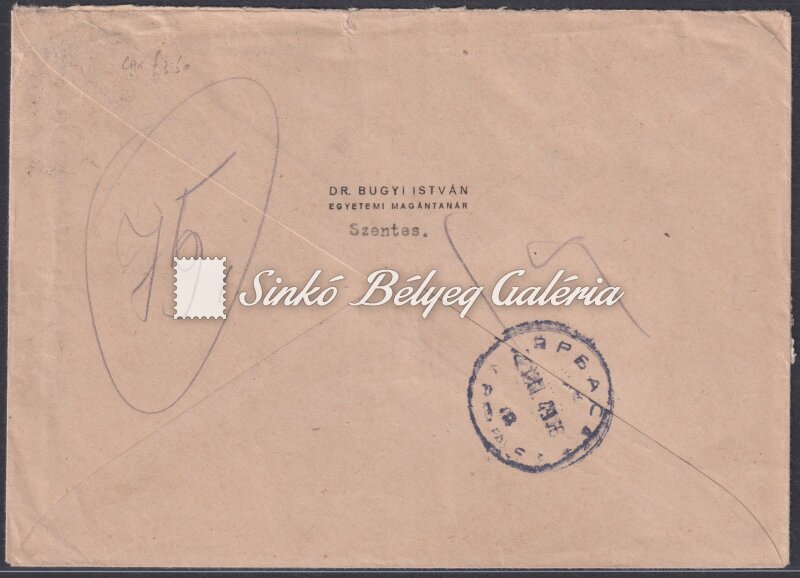 Leírás | 1949.11.15. Ajánlott távolsági levél külföldre, SZENTES-VRBAS (YU) között. 3Ft 30f díjtétellel! Hátoldali érkező bélyegzővel! / 1949.11.15. Registered long distance letter to abroad, between SZENTES-VRBAS (YU). With 3Ft 30f fare! With arriving cancellation on the backside! |