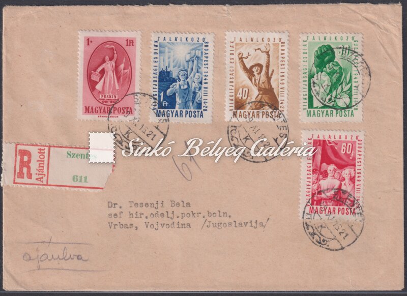 1949.11.15. Ajánlott távolsági levél külföldre, SZENTES-VRBAS