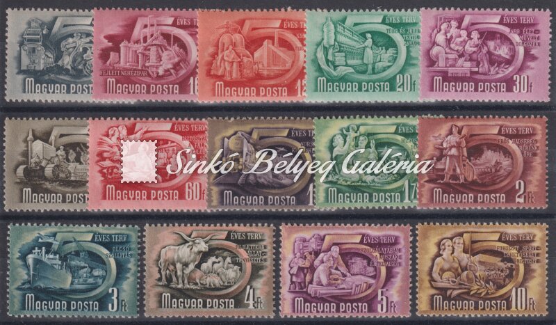 Leírás | 1950. Ötéves terv (I.) Katalógus érték: 40.000 HUF / 1950. Five-Year Plans (I.) Catalogue value: 40.000 HUF |