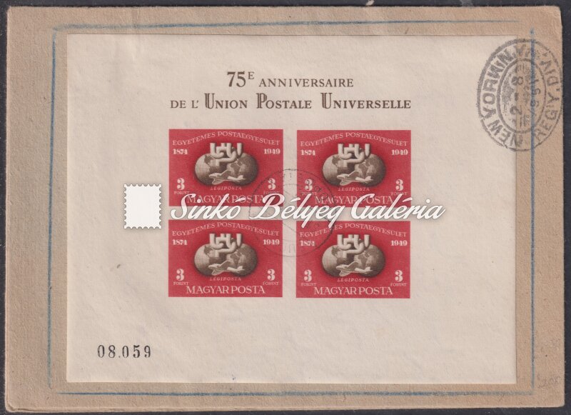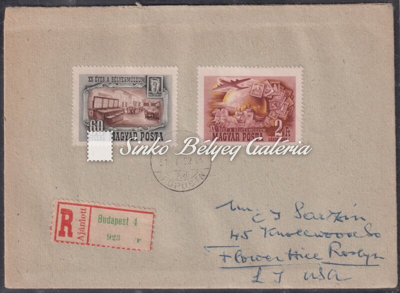 Leírás | 1950. UPU (I.) - Blokk ajánlott levélen A Bélyegmúzeum sor bélyegeivel kiegészítve NEW YORKba küldve! / 1950. UPU (I.) - Block on a registered letter supplied with The Stamp Museum set's stamp, sent to NEW YORK! |