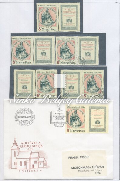 Leírás | 1990. 400 éves a Károli Biblia Postatiszta, bélyegzett állapotban, FDC-n, fordított állású szelvény és a mintabélyeg. / 1990. The Karoli Bible is 400 years old In MNH, used condition, on FDC too, with reverse position coupon and the sample stamp. |