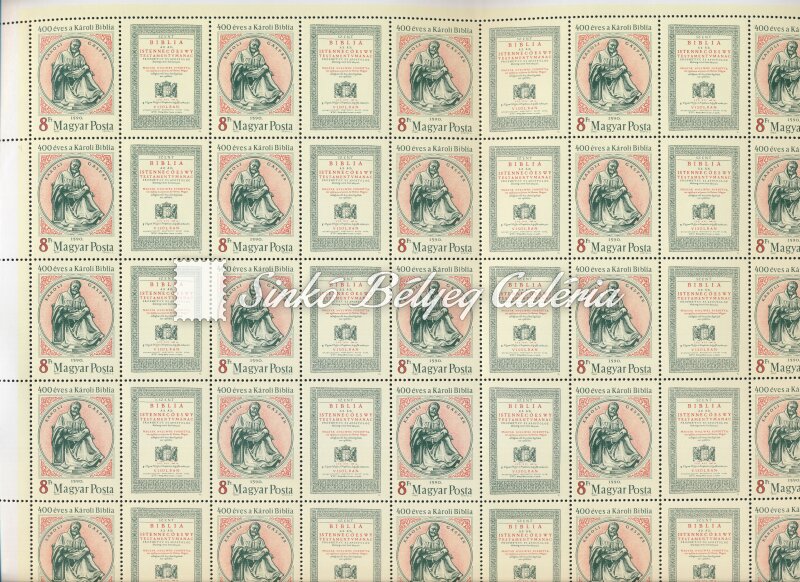 Leírás | 1990. 400 éves a Károli Biblia Hajtott teljes ív (25 bélyeg szelvénnyel) / 1990. The Karoli Bible is 400 years old Folded full sheet (25 stamps with coupons) |