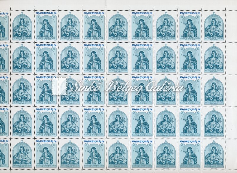 Leírás | 1992. Szent Margit és Boldog Kinga Hajtott teljes ív (25 bélyeg szelvénnyel) / 1992. Saint Margaret and Blessed Kinga Folded full sheet (25 stamps with coupons) |