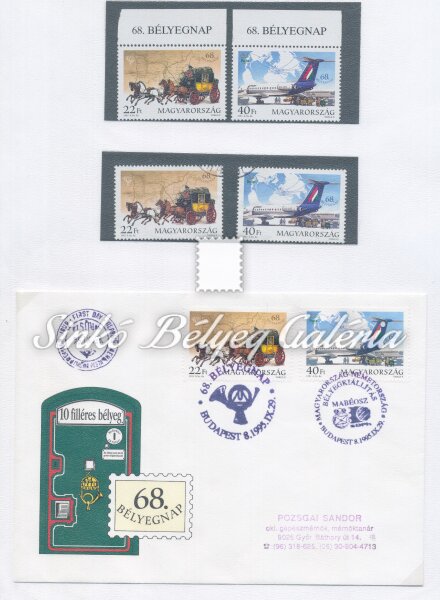 Description | 1995. Bélyegnap (68.) postatiszta állapotban ívszéli felirattal, bélyegzetten és FDC-én! / 1995. Stamp Day (68.) in MNH condition with subtitle on the margin, in used condition, and on FDC! |