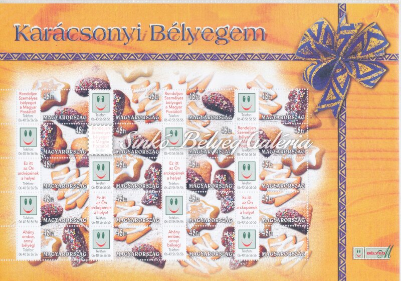 Leírás | 2004. Karácsonyi bélyegem - Sütemények Hajtatlan teljes ív sorszám nélkül. / 2004. My Christmas stamp - Cookies Unfolded full sheet without serial number. |