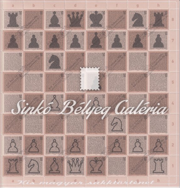 Leírás | 2004. Kis magyar sakktörténet Hajtott teljes ív (64 bélyeg) / 2004. Little Hungarian Chess History Folded full sheet (64 stamps) |