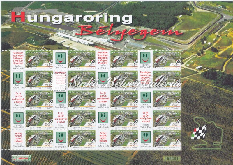Leírás | 2005. Hungaroring bélyegem Hajtatlan teljes ív sorszámozva. / 2005. My Hungaroring stamp Unfolded full sheet with serial number. |