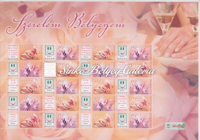 Leírás | 2006. Szerelem bélyegem Hajtatlan teljes ív. / 2006. My love stamp Unfolded full sheet. |