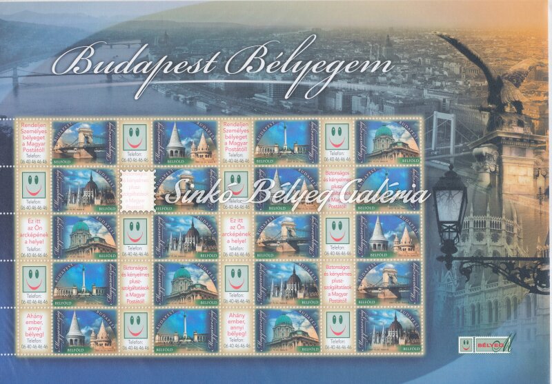 Leírás | 2007. Budapest bélyegem Hajtatlan teljes ív. / 2007. My Budapest stamp Unfolded full sheet. |