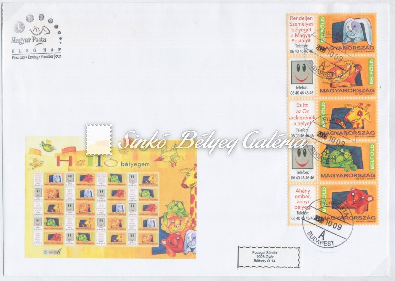 Leírás | 2008. Helló bélyegem - értékjelzés nélkül Szelvényes sor FDC-n. / 2008. My hello stamp - without denomination Set with coupon on FDC. |