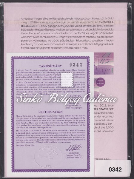 2018. Az Év Gyógynövénye: Valódi Levendula - bélyegszett