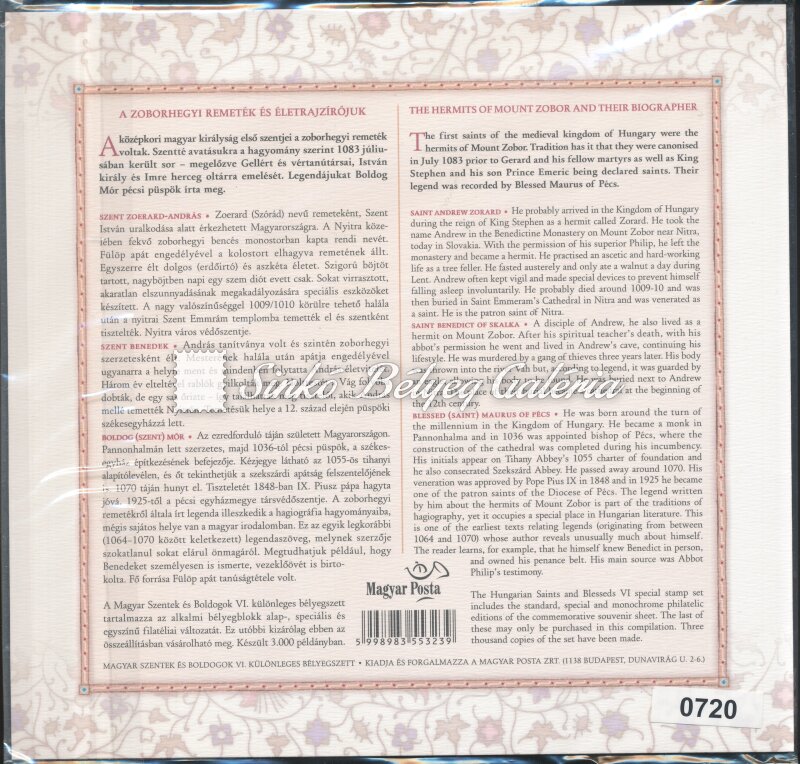 Description | 2018. Magyar Szentek és Boldogok (VI.) - Különleges bélyegszett. Katalógus érték: 13.500 HUF / 2018. Hungarian Saints and Blesseds (VI.) - Special stamp set. Catalogue value: 13.500 HUF |