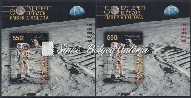 Description | 2019. 50 éve lépett először ember a Holdra - Blokk Vágott és fogazott, azonos fekete és piros sorszámmal. / 2019. Man landed on the Moon 50 years ago - Block Imperforate and perforate blocks with identical black and red serial numbers. |