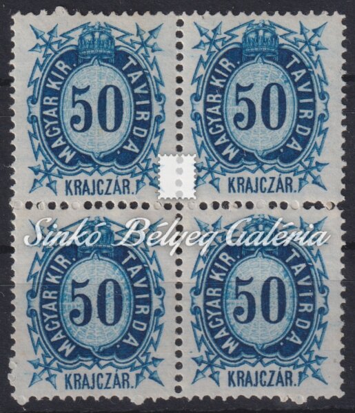 1874. Távírda bélyeg, réznyomat 50kr bélyegtömb