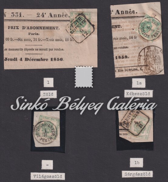 1853. Hírlapbélyeg 2kr bélyegek, PESTH