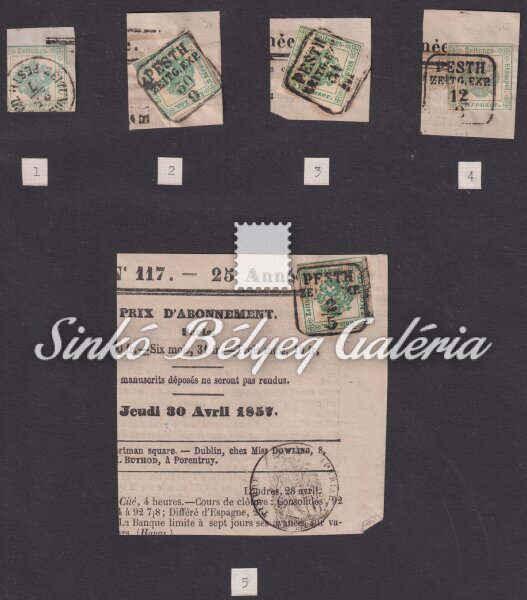 1853. Hírlapbélyeg tanulmány, 2kr bélyegek, PESTH