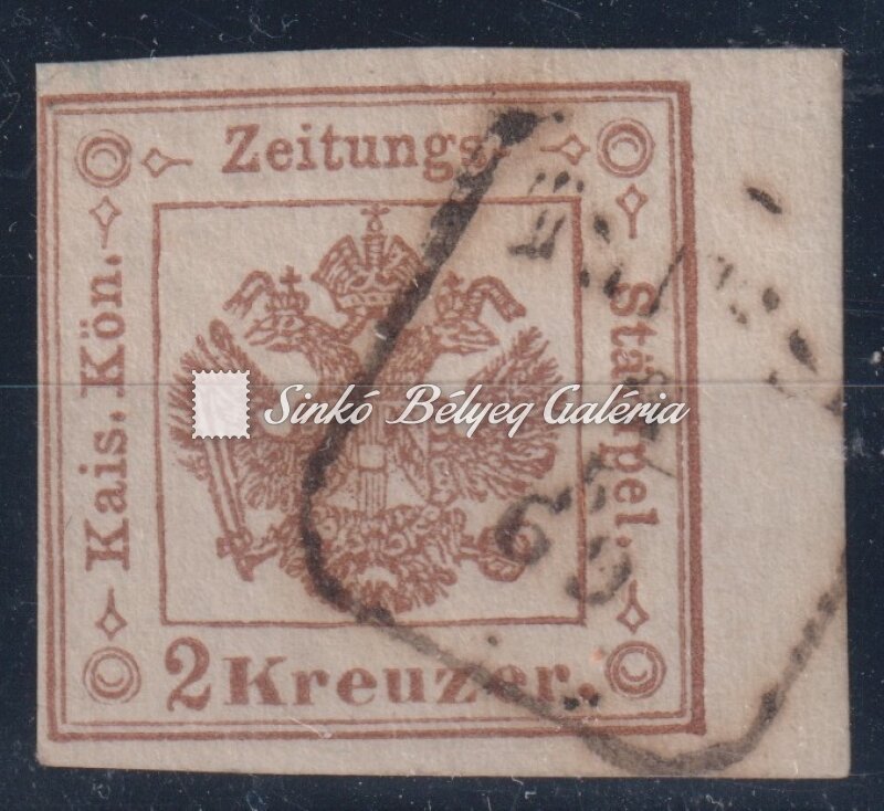 Leírás | 1858. Hírlapbélyeg II. típusú 2kr ívszéli bélyeg! / 1858. Newspaper stamp type II. 2kr stamp from the margin of the sheet! |