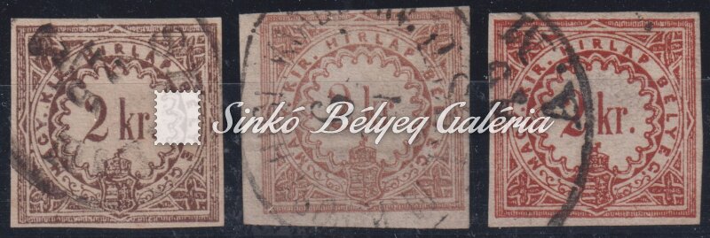 Leírás | 1868. Hírlapbélyeg 2kr bélyegek 3 féle színben! / 1868. Newspaper stamp 2kr stamps in 3 colours! |