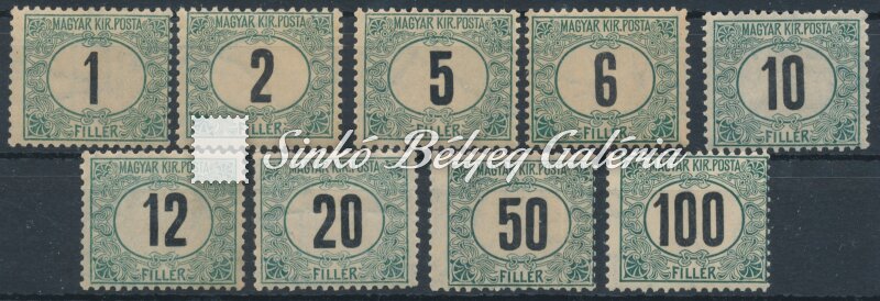 Leírás | 1903. Zöldportó (I.) A sor 11 3/4: 12 fogazattal! / 1903. Green Porto (I.) A set with 11 3/4: 12 perforation! |