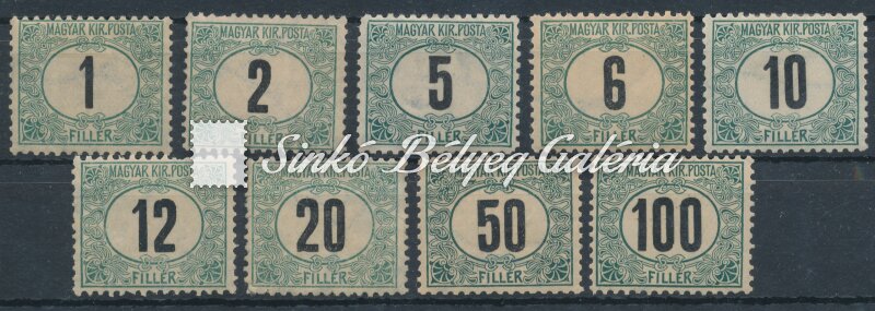 Leírás | 1903. Zöldportó (I.) A sor 11 3/4: 12 fogazattal! / 1903. Green Porto (I.) A set with 11 3/4: 12 perforation! |