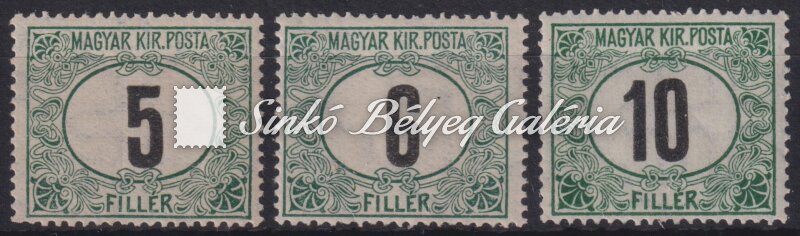 Leírás | 1914. Zöldportó (V.) 3 érték B, álló vízjellel! Katalógus érték: 10.000 HUF / 1914. Green Porto (V.) 3 values with B, standing watermark! Catalogue value: 10.000 HUF |