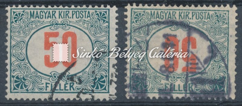 Leírás | 1915. Pirosszámú Zöldportó - tévnyomat 50f bélyegen fordított értékszám! / 1915. Red number Green Porto - misprint Reverse denomination on 50f stamp! |