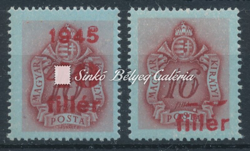 Leírás | 1945. Kisegítő Portó - tévnyomat 40f/16f bélyeg a felülnyomat jelentős hiányával! / 1945. Auxiliary Porto - misprint 40f/16f stamp with significantly missing overprint! |