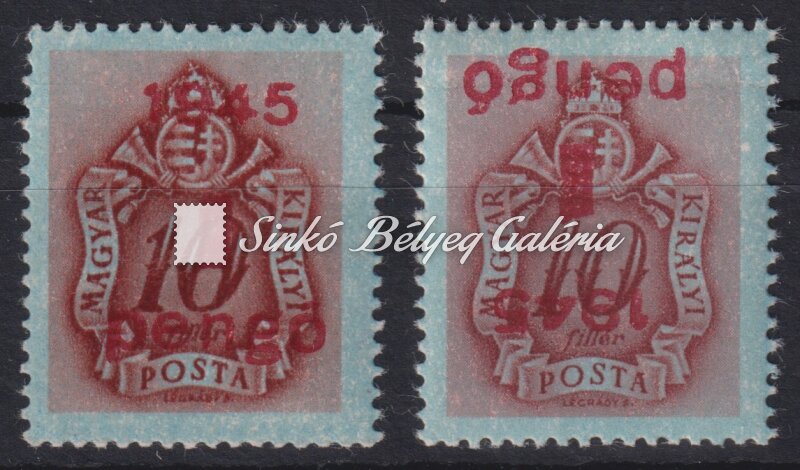 Leírás | 1945. Kisegítő Portó - tévnyomat 1P/10f bélyegen fordított felülnyomat! / 1945. Auxiliary Porto - misprint Reverse overprint on 1P/10f stamp! |