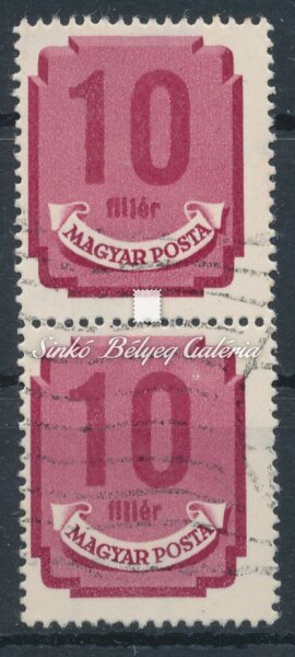 Leírás | 1950. Forint-Filléres Portó (II.) - különlegesség 10f bélyegpár d, állású számvízjellel! / 1950. Forint-Filler Porto (II.) - speciality 10f stamp pair with d, position number watermark! |