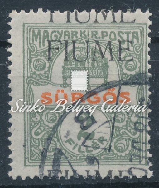 Leírás | 1918. Fiume (Olasz megszállás) 2f Sürgős bélyegen dupla felülnyomat! R! Bodor M. bélyegszakértő hátoldali bevizsgáló jelével. / 1918. Fiume (Italian occupation) 2f Urgent stamp with double overprint! R! With the stamp expert, M. Bodor's proof sign on the backside. |