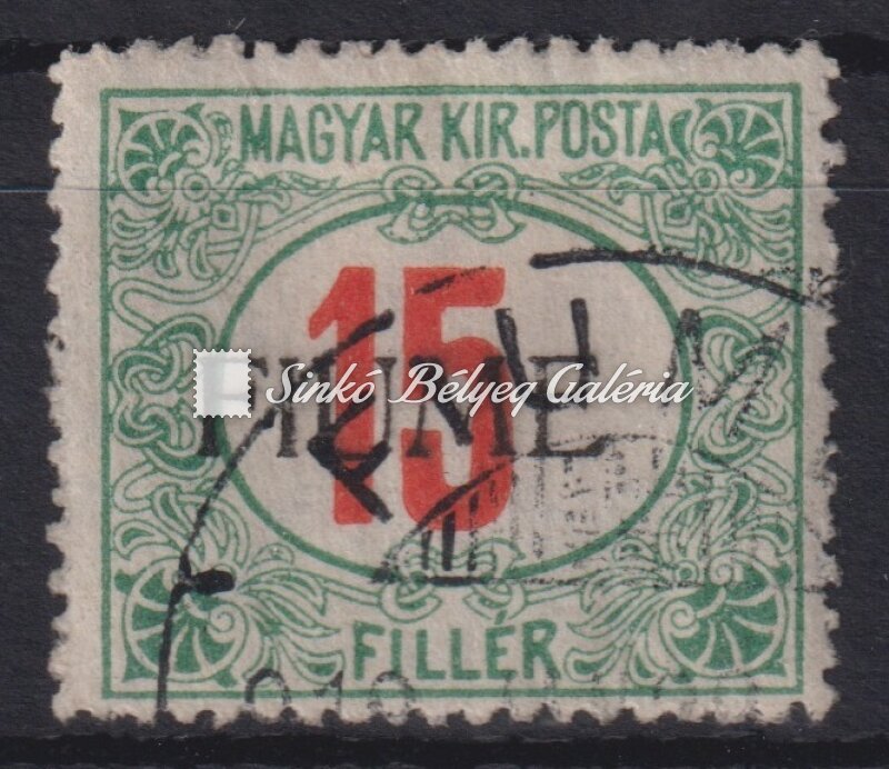 Leírás | 1918. Fiume (Olasz megszállás) 15f Pirosszámú Portó bélyeg gépi II. felülnyomattal! Bodor M. bélyegszakértő hátoldali bevizsgáló jelével. / 1918. Fiume (Italian occupation) 15f Red number Porto stamp with machine II. overprint! With the stamp expert, M. Bodor's proof sign on the backside. |