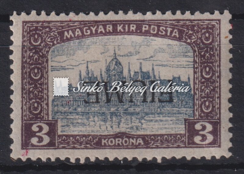 Leírás | 1918. Fiume (Olasz megszállás) 3K Parlament bélyeg fordított gépi II. felülnyomattal!!! RRR! Bodor M. bélyegszakértő hátoldali bevizsgáló jelével. / 1918. Fiume (Italian occupation) 3K Parliament stamp with reversed machine II. overprint!!! RRR! With the stamp expert, M. Bodor's proof sign on the backside. |