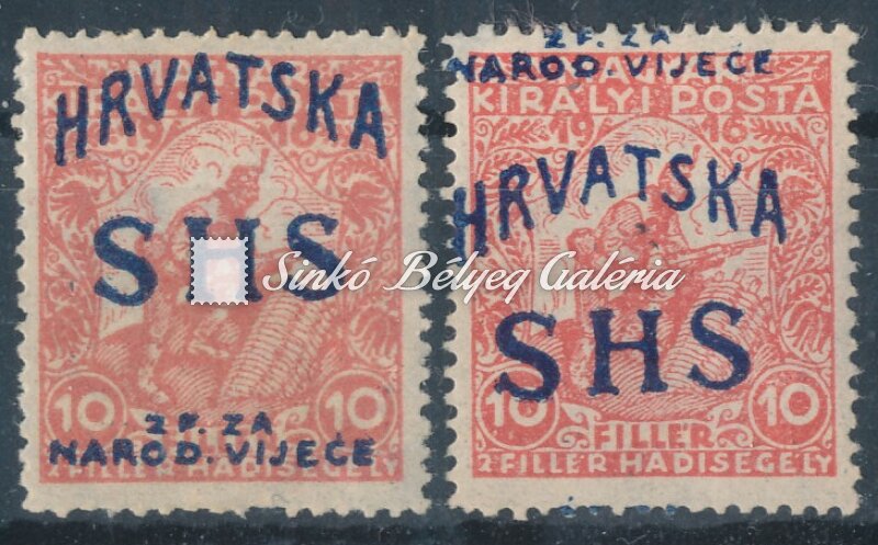 Leírás | 1918. SHS Horvátország 10f+2f Hadisegély (III.) bélyeg jelentősen elcsúszott felülnyomattal. Bodor M. bélyegszakértő bevizsgáló jelével. / 1918. SHS Croatia 10f+2f Military aid (III.) stamp with significantly slipped overprint. With the stamp expert M. Bodor's proof sign on the backside. |