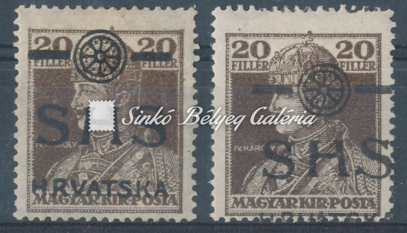 Leírás | 1918. SHS Horvátország 20f Károly bélyegen elcsúszott felülnyomattal. Bodor M. bélyegszakértő bevizsgáló jelével. / 1918. SHS Croatia 20f Karoly stamp with slipped overprint. With the stamp expert M. Bodor's proof sign on the backside. |