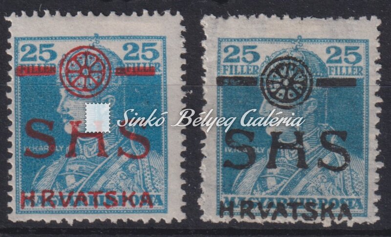Leírás | 1918. SHS Horvátország 25f Károly bélyeg forgalomba nem került fekete színű felülnyomattal! Bodor M. bélyegszakértő bevizsgáló jelével. / 1918. SHS Croatia 25f Karoly stamp with the black overprint, which was not put into circulation! With the stamp expert M. Bodor's proof sign on the backside. |