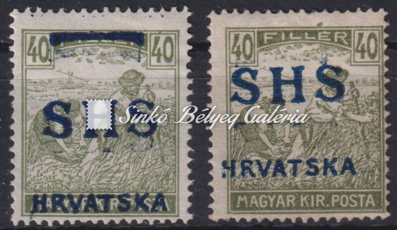 Description | 1918. SHS Horvátország 40f Arató bélyegen jelentősen elcsúszott felülnyomat! Bodor M. bélyegszakértő bevizsgáló jelével. / 1918. SHS Croatia Significantly slipped overprint on 40f Harvester stamp! With the stamp expert M. Bodor's proof sign on the backside. |