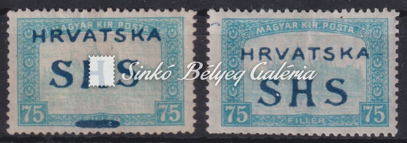 Leírás | 1918. SHS Horvátország 75f Parlament bélyegen jelentősen elcsúszott felülnyomat! Bodor M. bélyegszakértő bevizsgáló jelével. / 1918. SHS Croatia Significantly slipped overprint on 75f Parliament stamp! With the stamp expert M. Bodor's proof sign on the backside. |